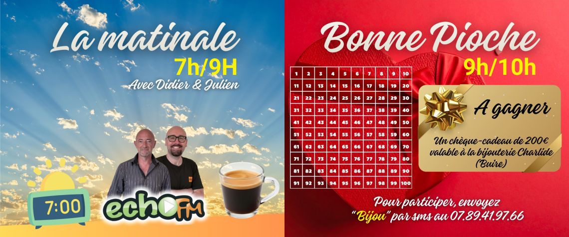 Retrouvez l'info locale tous les matins de 7H à 9H avec un rappel des titres à :30 !