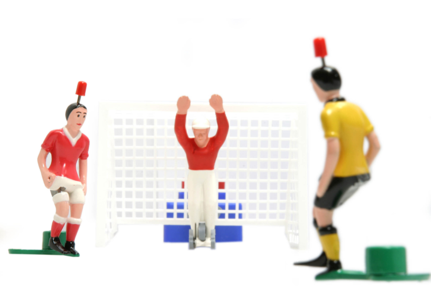 Chaque joueur a un joueur en métal articulé, fixé sur un socle. En appuyant sur un bouton situé sur la tête du joueur, on actionne son pied qui tire dans la balle. Le ballon est bicolore (moitié noire, moitié blanche), et seul le joueur dont la couleur est visible sur le dessus peut jouer. Il y a aussi un gardien que l’on peut faire pivoter à la main pour bloquer les tirs.